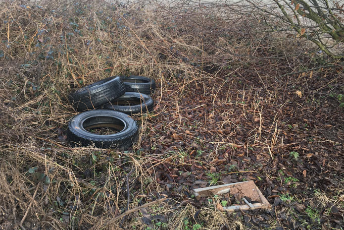 Due to the softness of the ground and not wanting to cause further damage it was decided on the day that all we could do was to fill in the large hole and cut back some blackthorn that was encroaching in one section. Filling in the hole took most of the day, firstly a grip was dug to relieve the water and then bricks that had been brought by the volunteers were placed into the ruts to bring the height back up. Thanks go to Rob for letting us use his Defender as a wheelbarrow! Finally we were able to tip a load of hard core, kindly provided by a local land owner and delivered by one of the volunteers into the hole to build on the base that had been created and make a suitable surface. Some of the fly-tipping was removed and taken to the local tip.