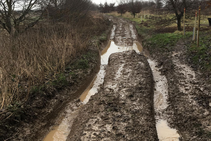 From local knowledge as the Green Lane Association Rep for East Yorkshire it became apparent that the lane at Bainton was deteriorating quite badly from use during wet weather. This might be due to the Seasonal TROs on other local lanes putting more pressure on the rest. During the summer the lane was passable with only a small section that was rutted. By the New Year this small section had extended significantly and a large hole had been created that had filled with water. Further damage was being caused by vehicles that were recovering those that had become stuck in the hole.
