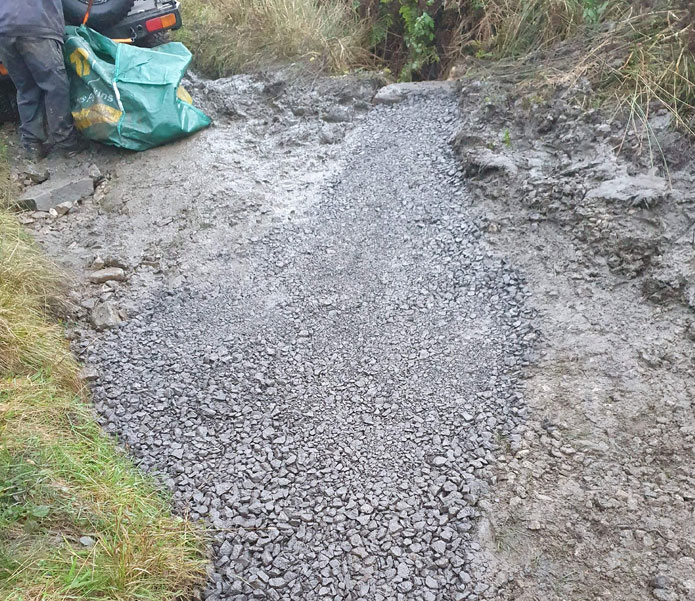 Along with the repair work the team carried a large amount of rubbish left by fly tippers to the top of the lane ready for collection by the local authority.