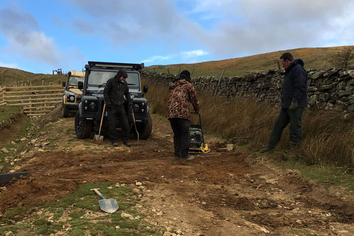 This was to be the stuff of sliced bread, I managed to get hold of the company ( and a contact name ) actually doing the work. That turned out to be Roocrofts of Preston. I eventually spoke to Paul, and explained what I was looking for and what they were needed for. Arrangements made, met Jezz and Duncan at about 8pm, loaded up the old scrap barriers and headed off up to Nidderdale. Working closely with the farmer, who uses the route to access his land, we fitted the grips.