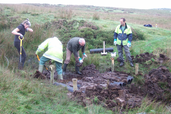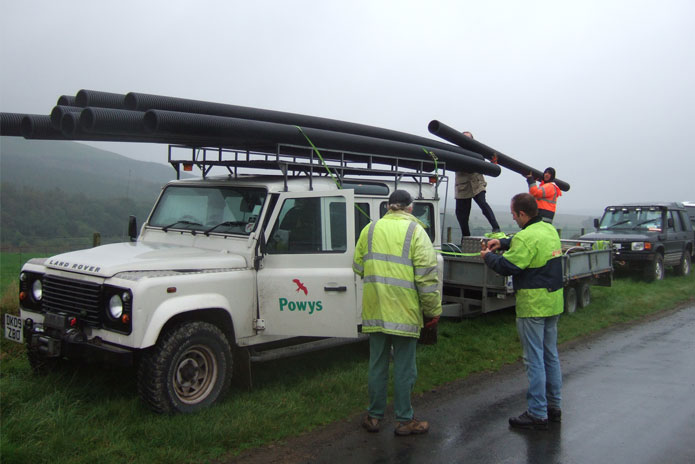 Glyndwr's Way National Trail near Llangadfan is set to be improved thanks to a project that has been started to build boardwalks made of lightweight culvert pipes and mesh on an inaccessible and boggy part of the trail.