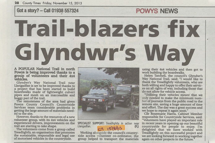 A popular National Trail in north Powys is being improved thanks to a group of volunteers and their 4x4 vehicles.